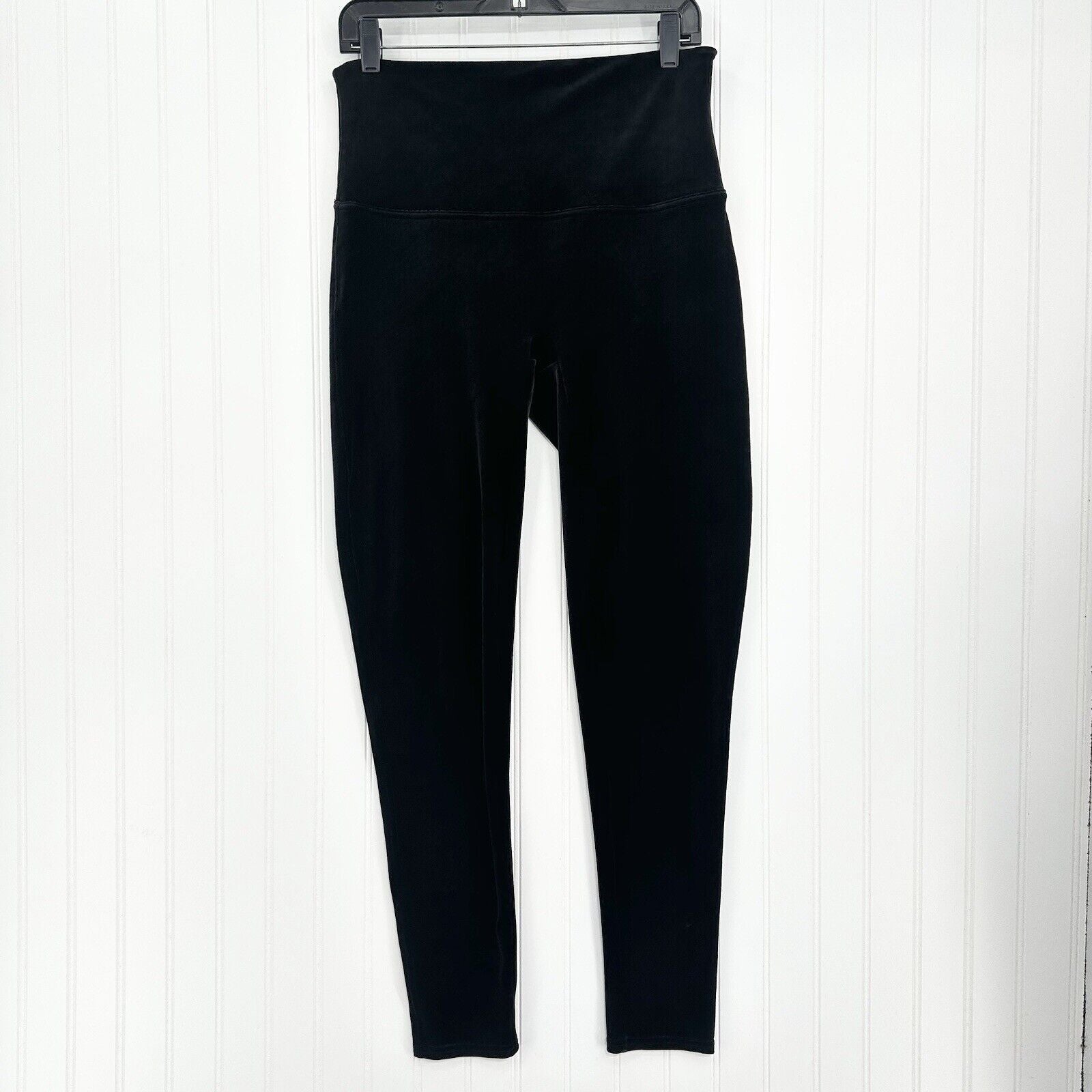Spanx Leggings Womens 1X Black Velvet Pants Pull On Slimming Goth Emo Y2K EUC