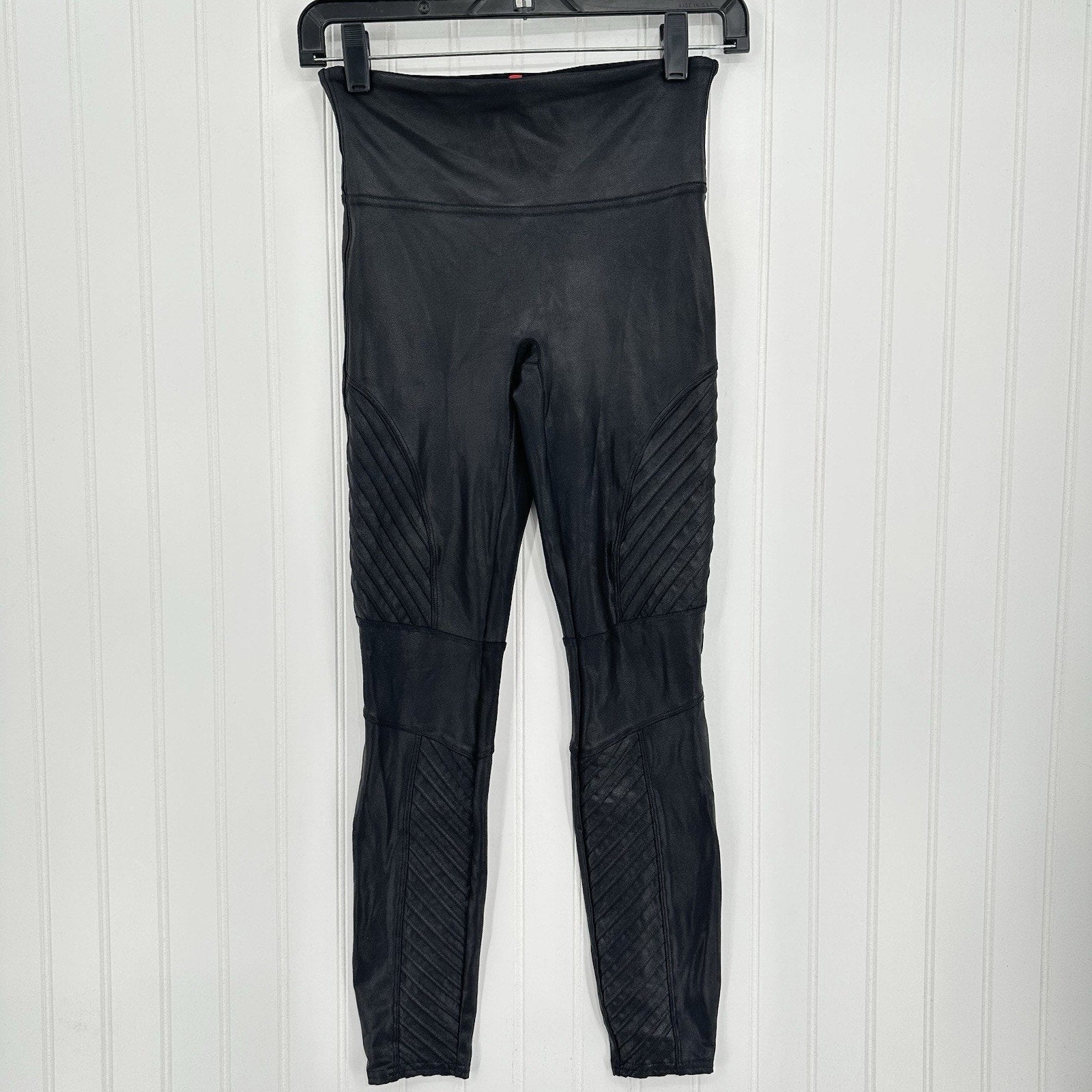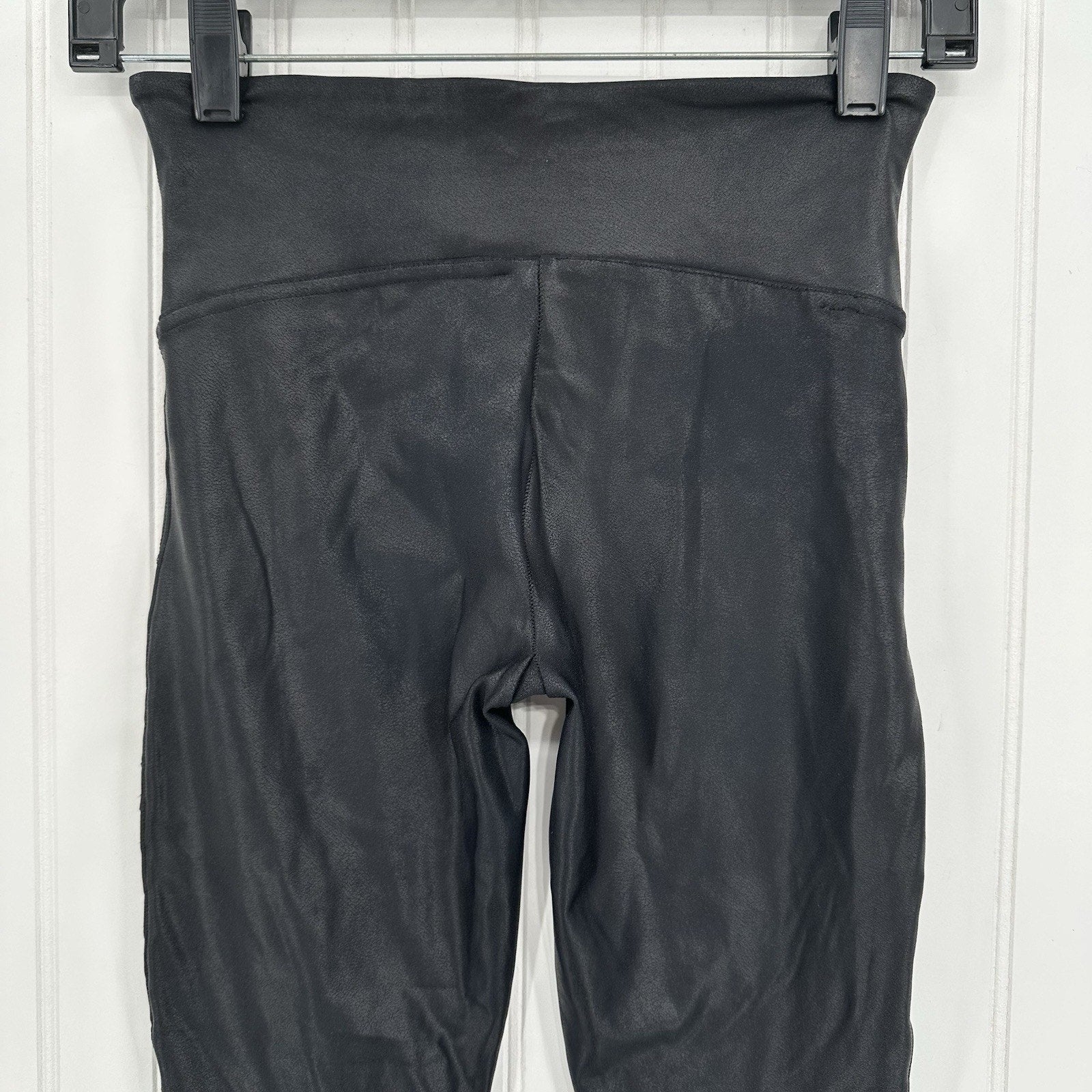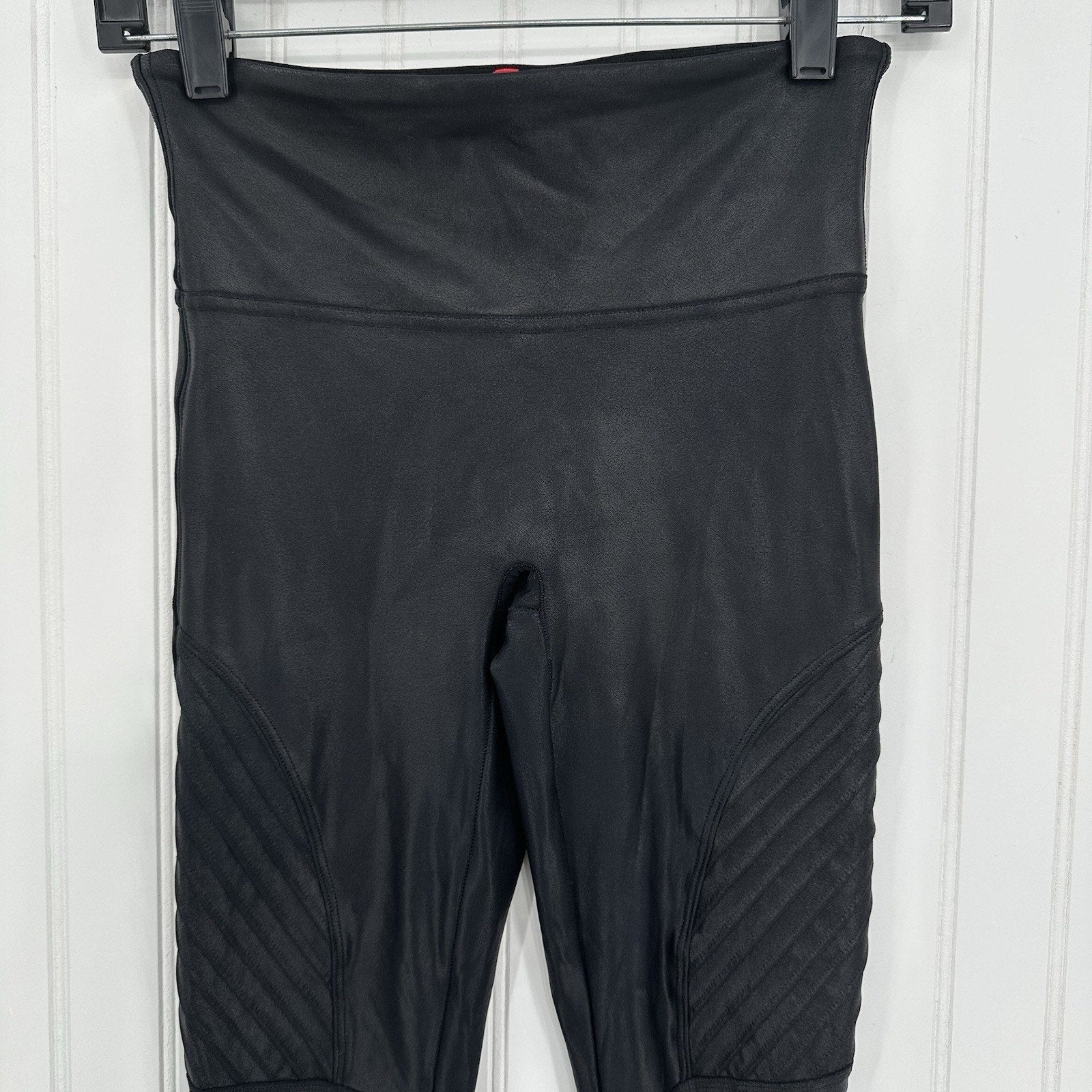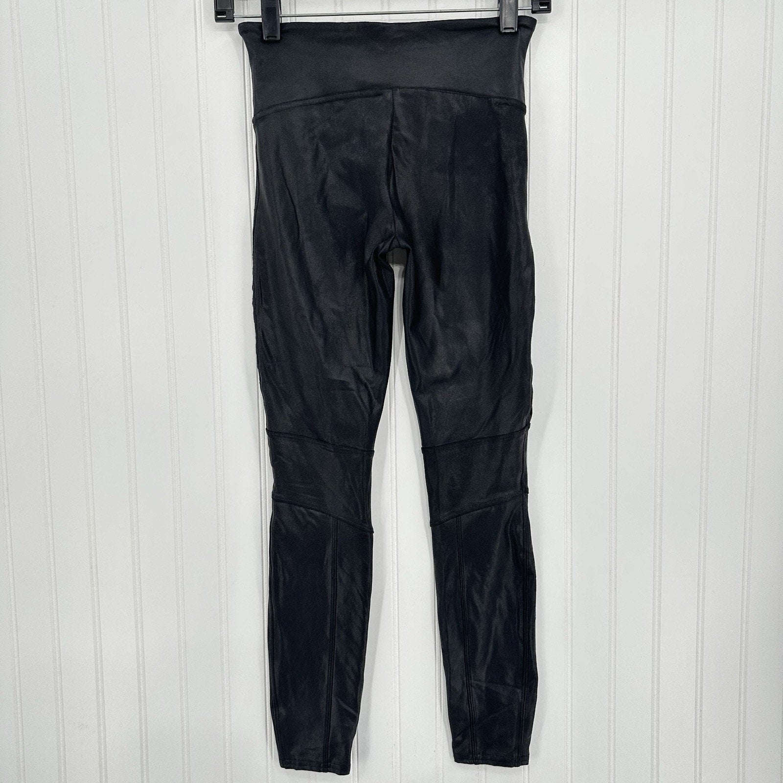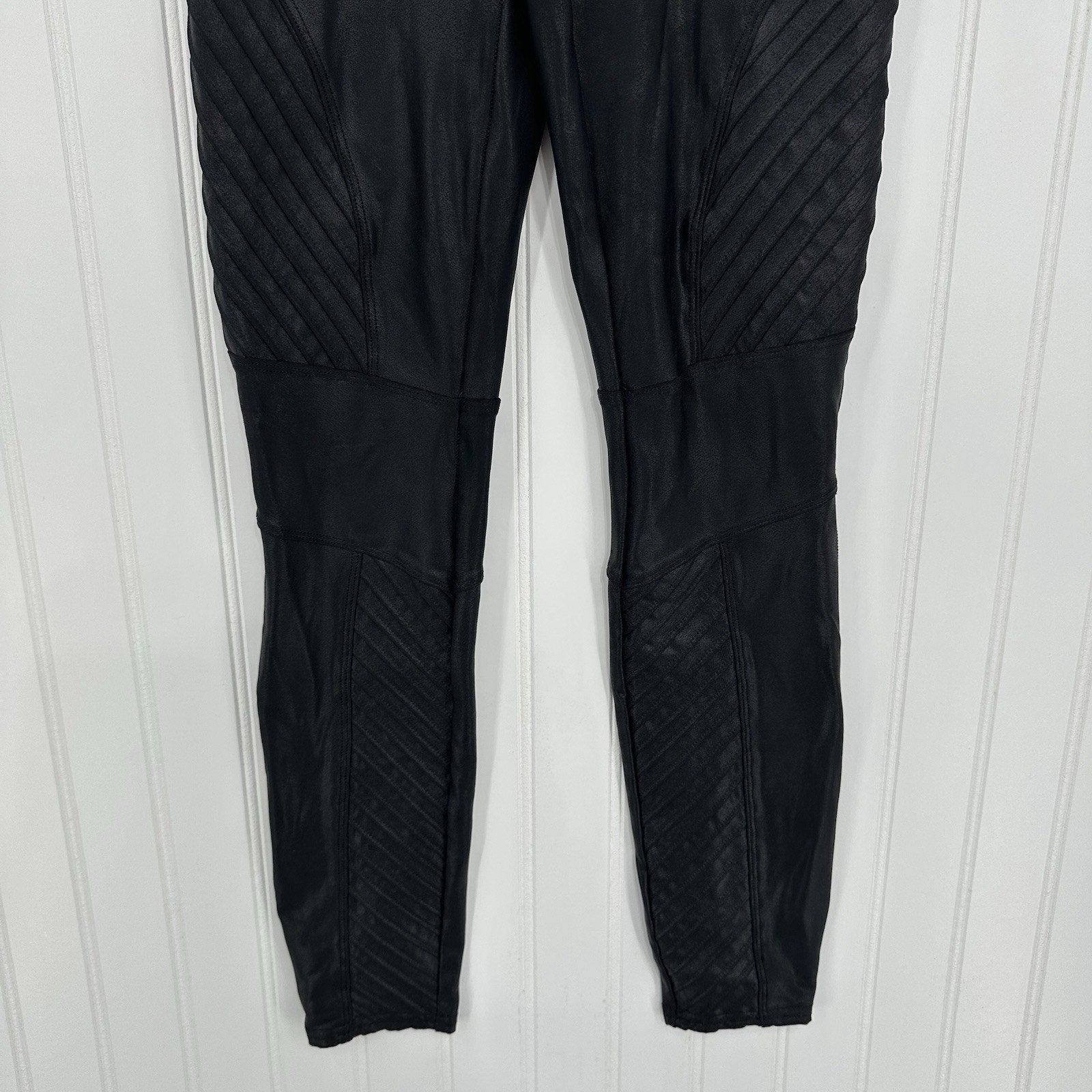 Spanx Leggings Womens Small Petite Faux Leather Moto Black Pants Slimming EUC