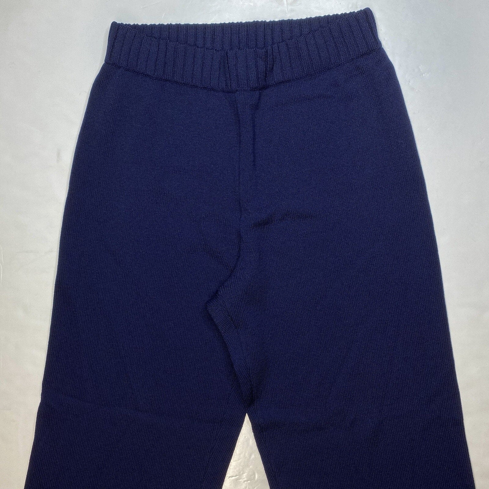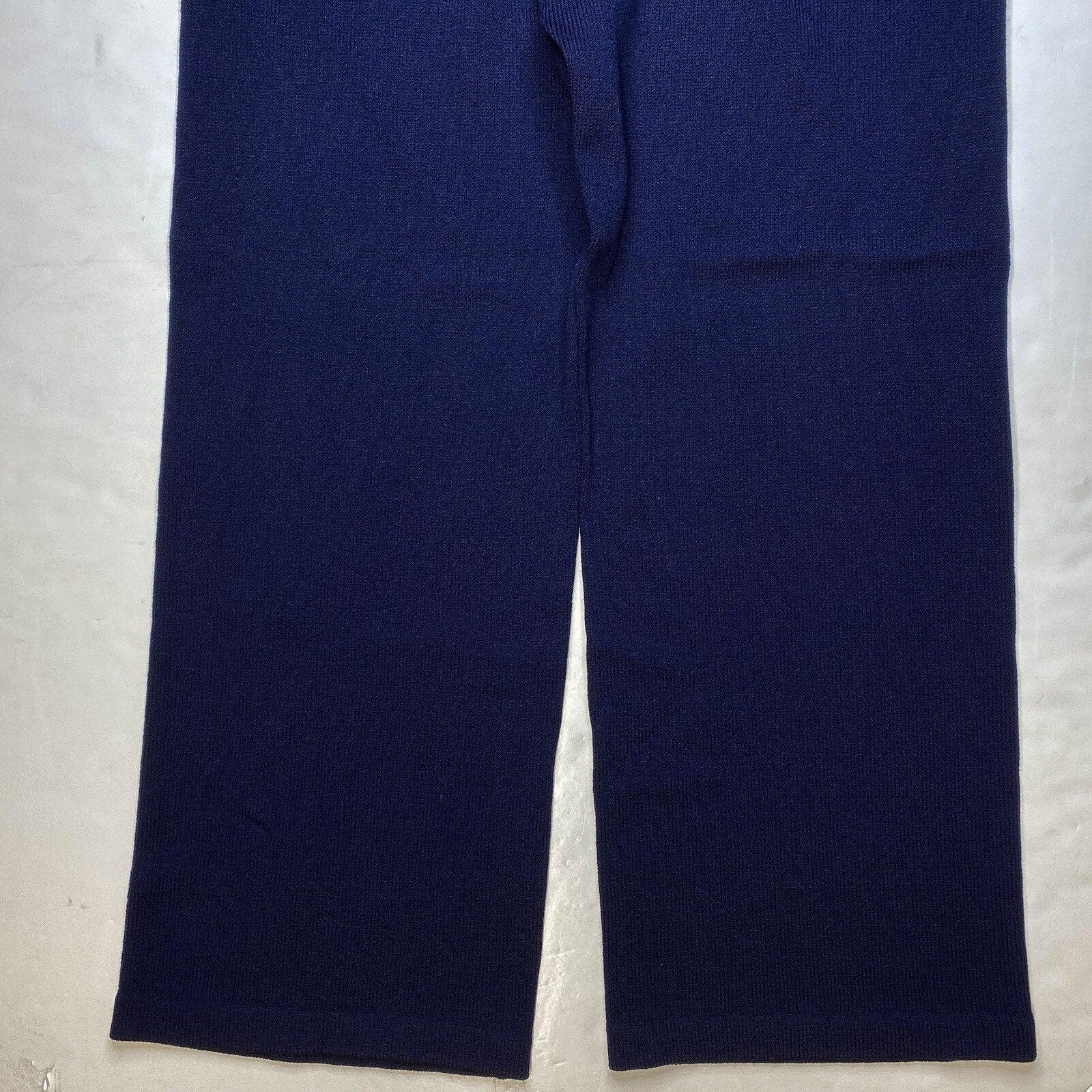St John Sport Santana Knit Wide Leg Pants Womens Size Medium Wool/Rayon Blend Dark Navy Blue Pull On Stretch Casual/Dress Pants EUC Basic Staple Classic Capsule Minimal Designer