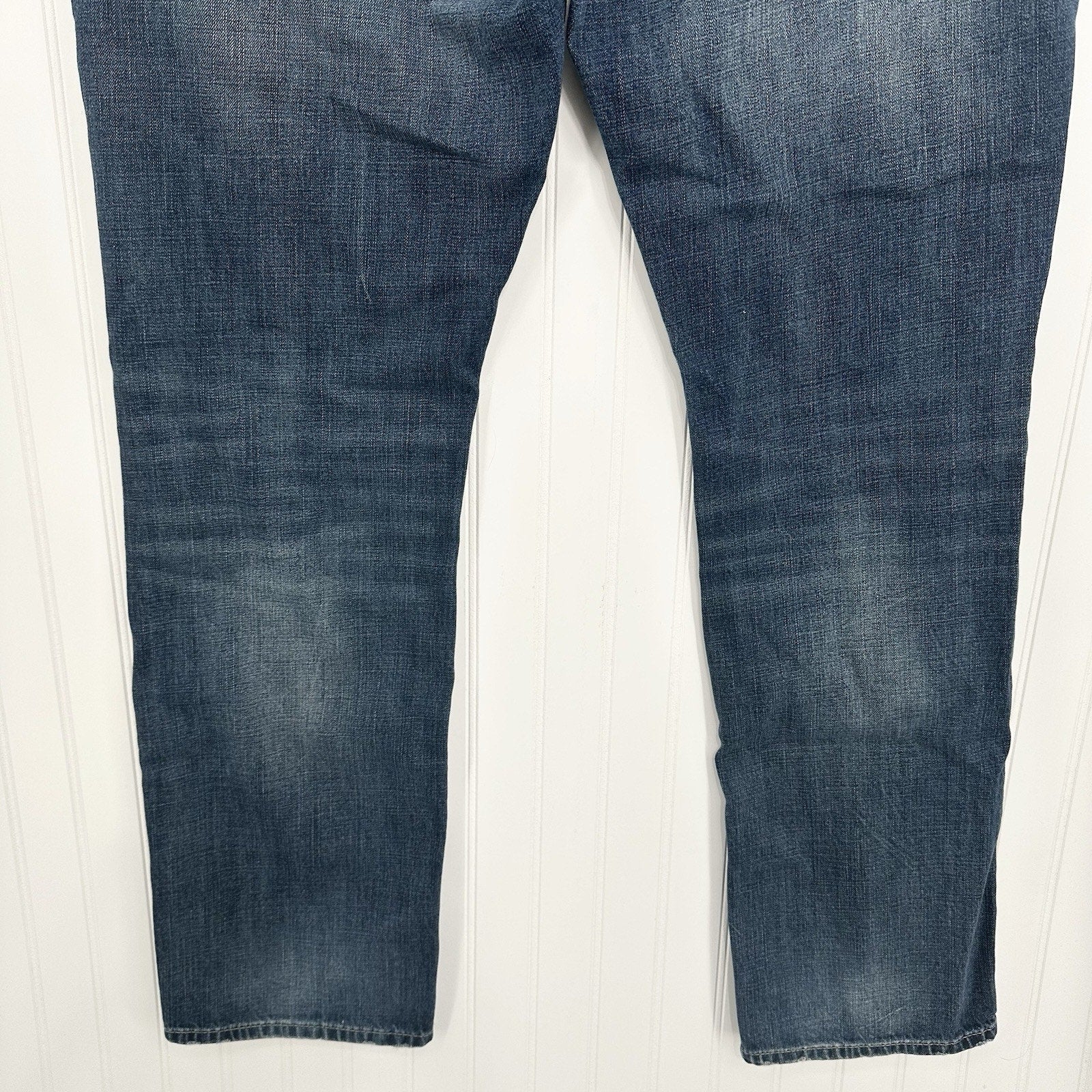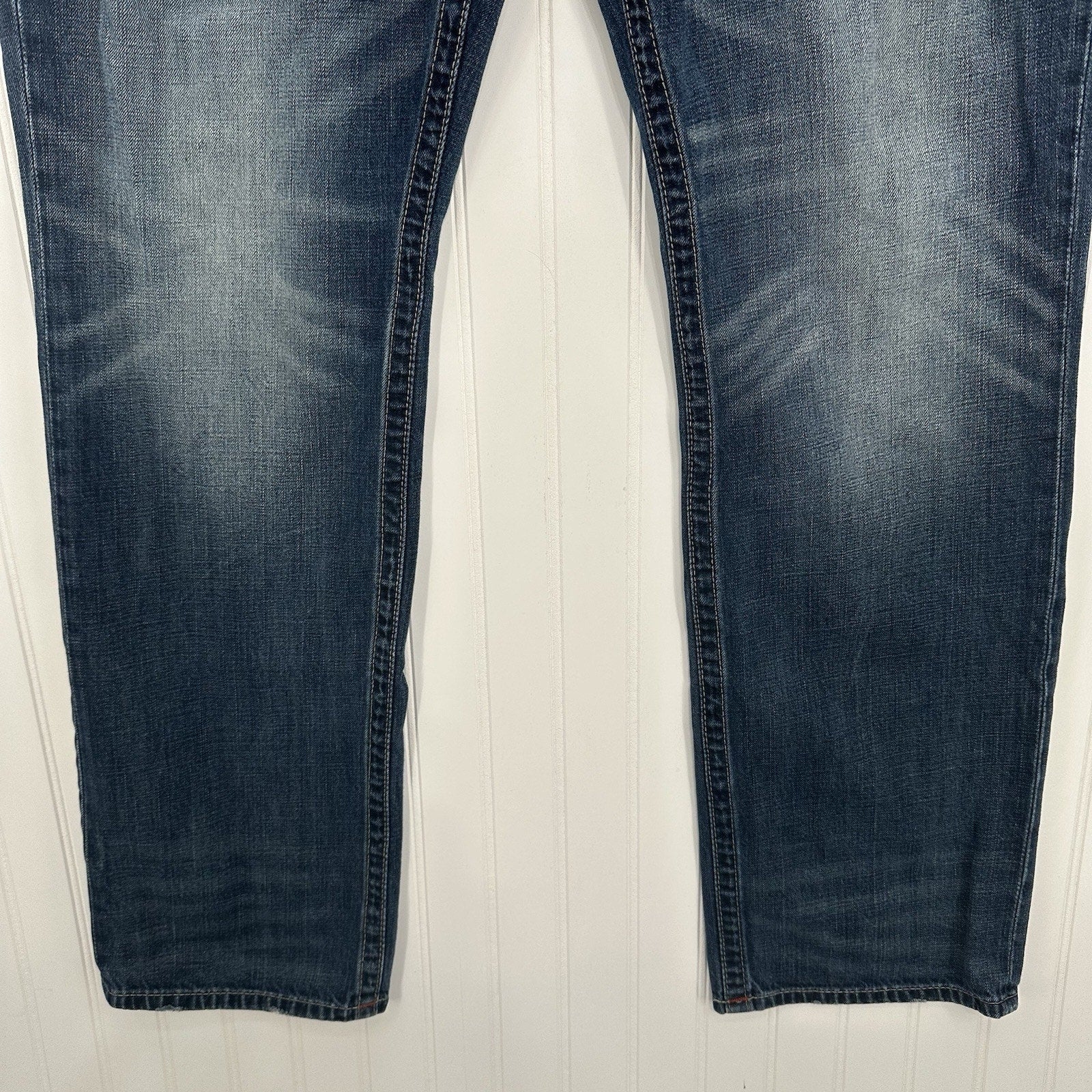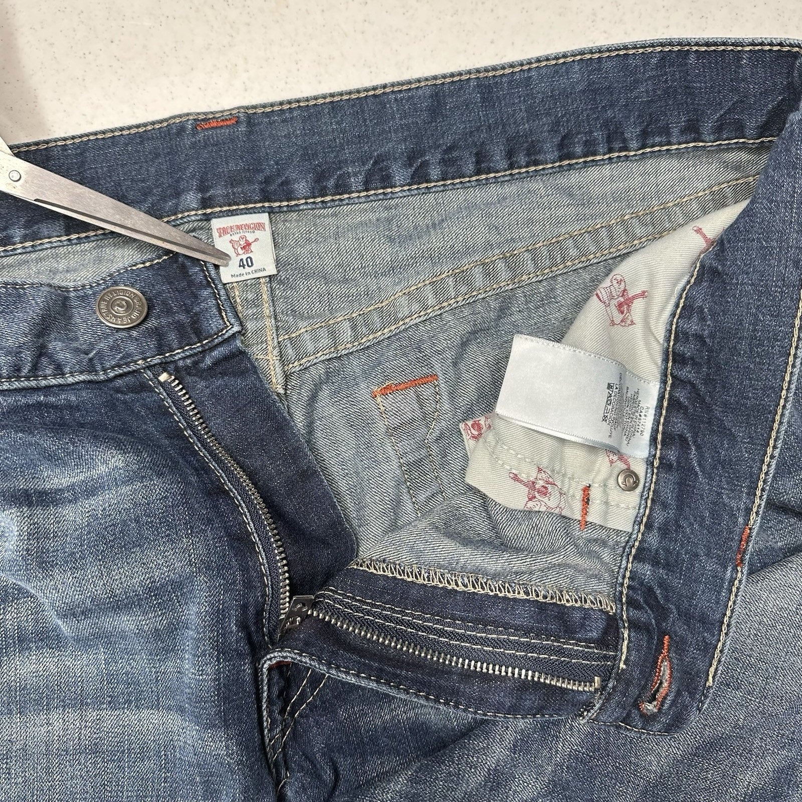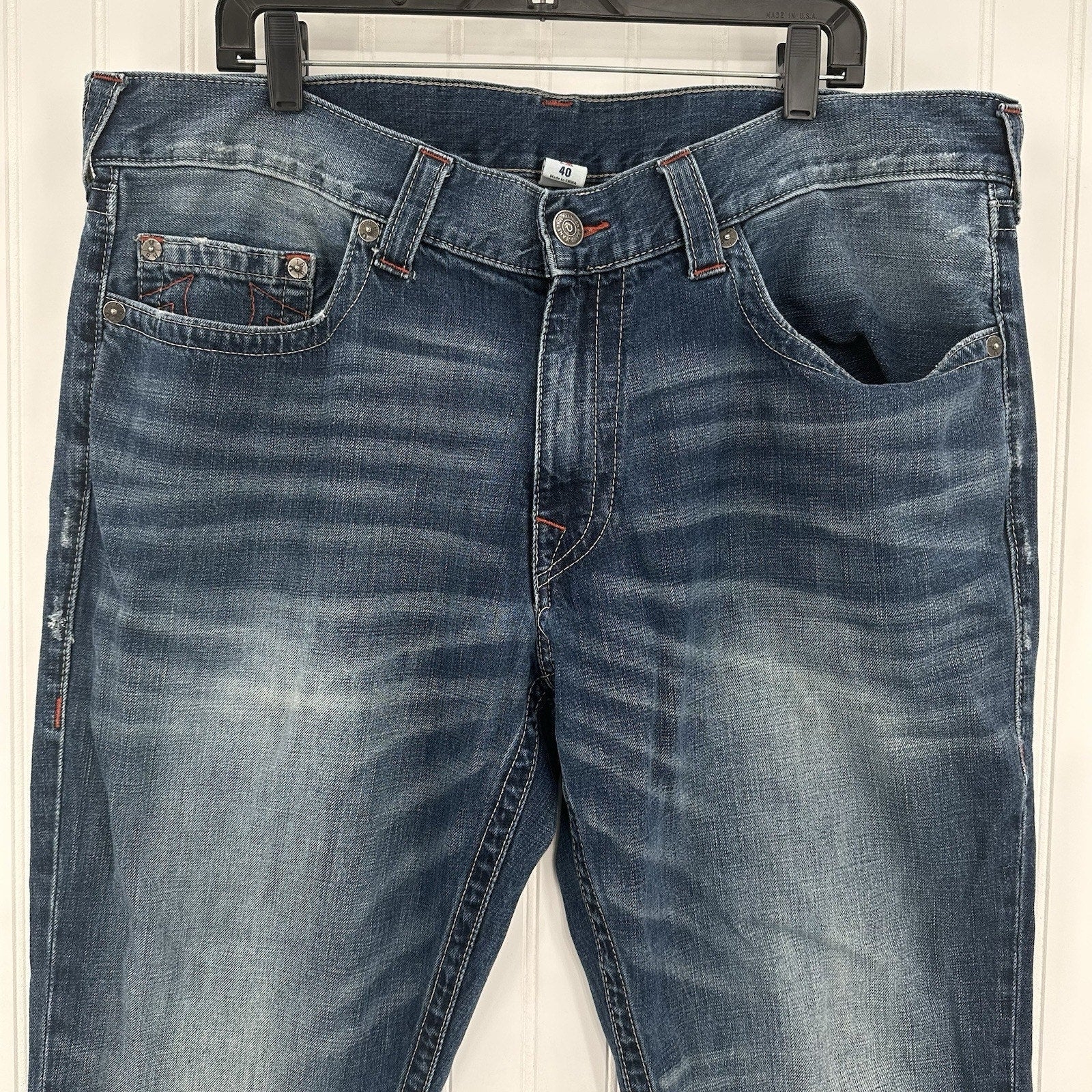 True Religion Jeans Mens 40x34 Section Straight Leg Blue Denim Distressed *Flaw