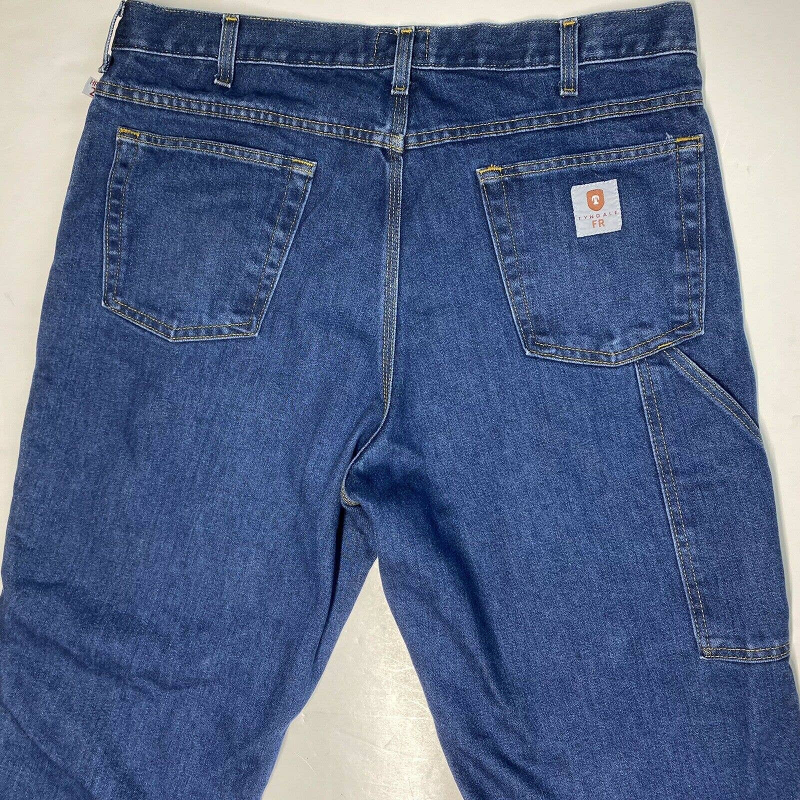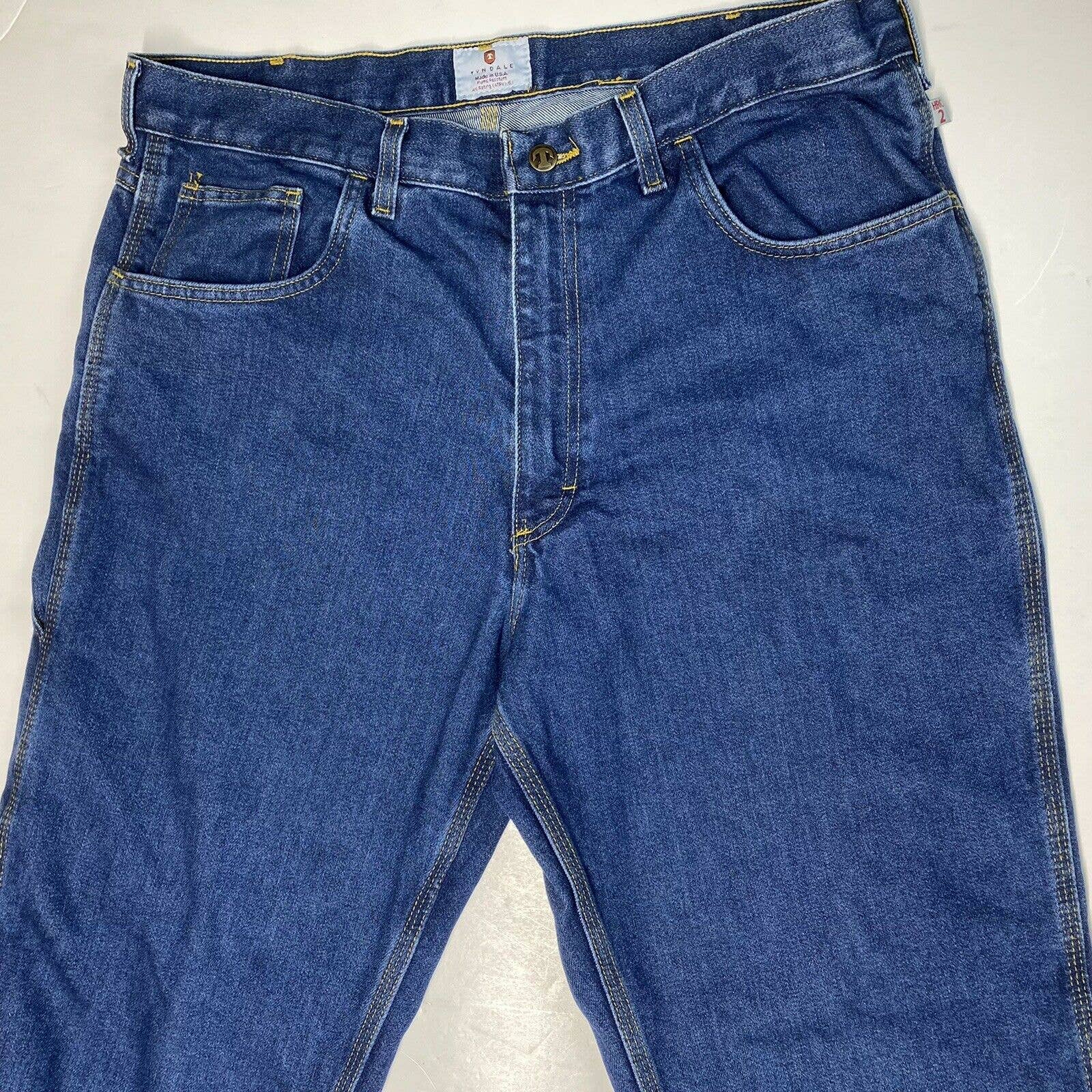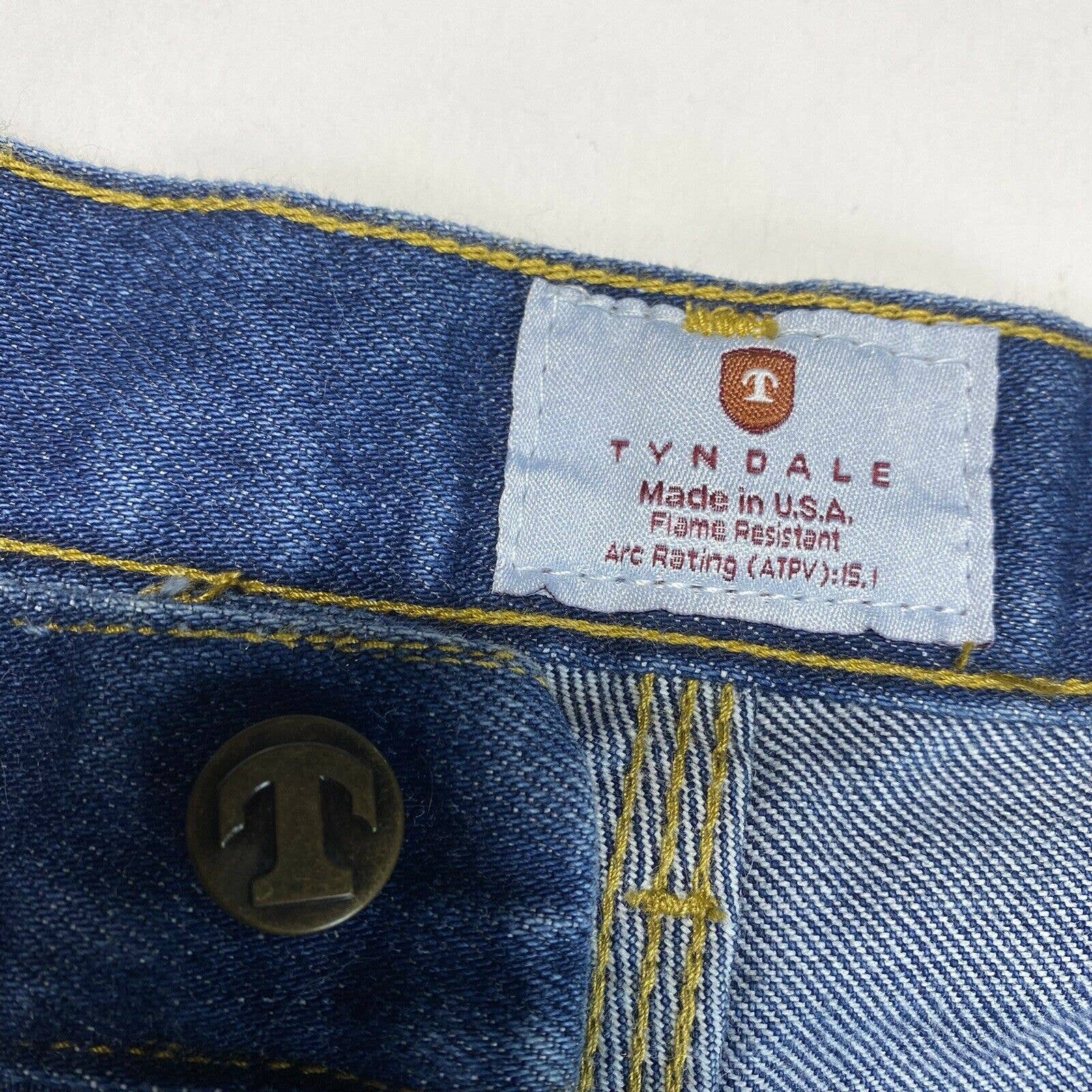 Tyndale Broken-In Relaxed Flame/Fire Resistant Utility Denim Blue Jeans Dark Wash Mens (Tag Size 38x30) NFPA 2112 ARC Rating 15.3/CAT2 Style#F290T