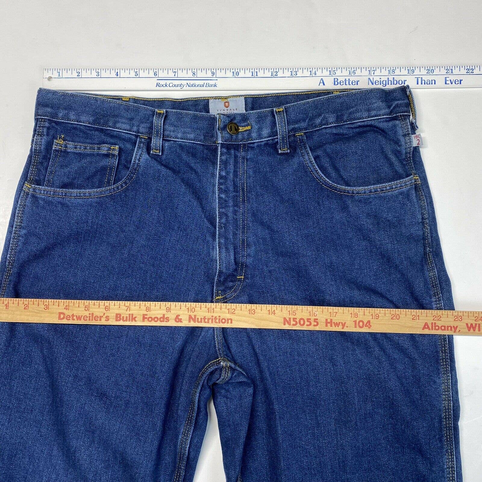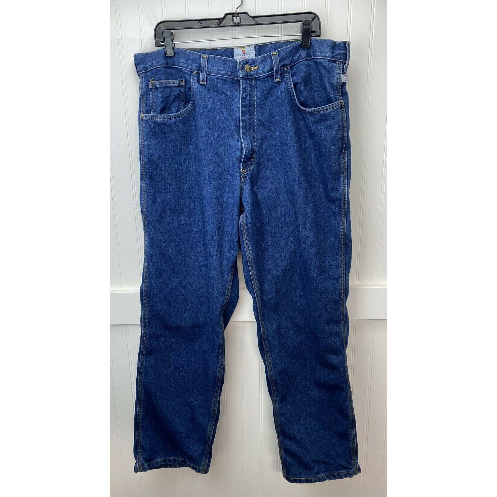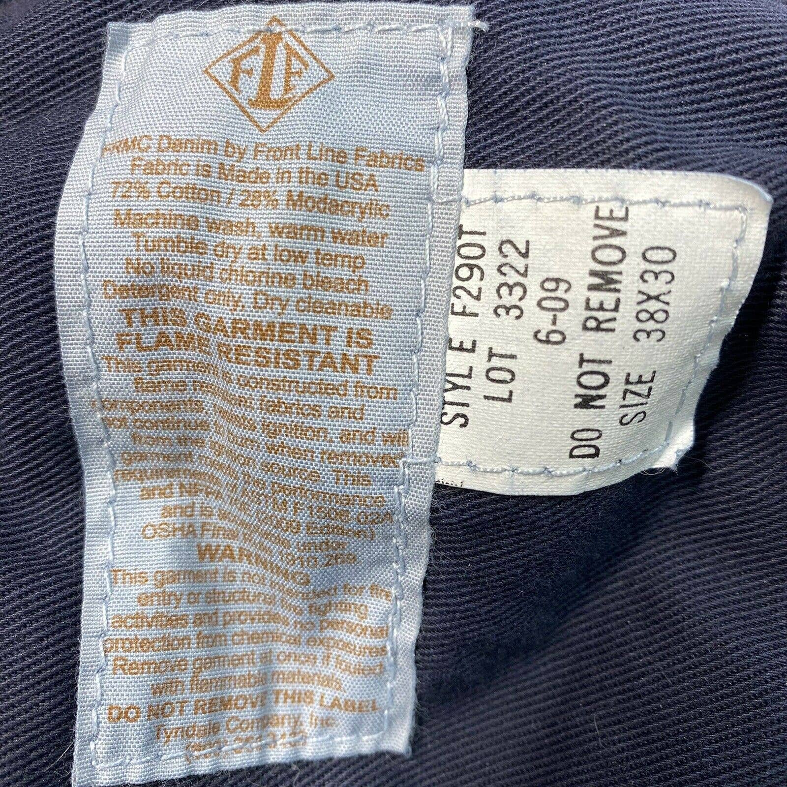 Tyndale Broken-In Relaxed Flame/Fire Resistant Utility Denim Blue Jeans Dark Wash Mens (Tag Size 38x30) NFPA 2112 ARC Rating 15.3/CAT2 Style#F290T
